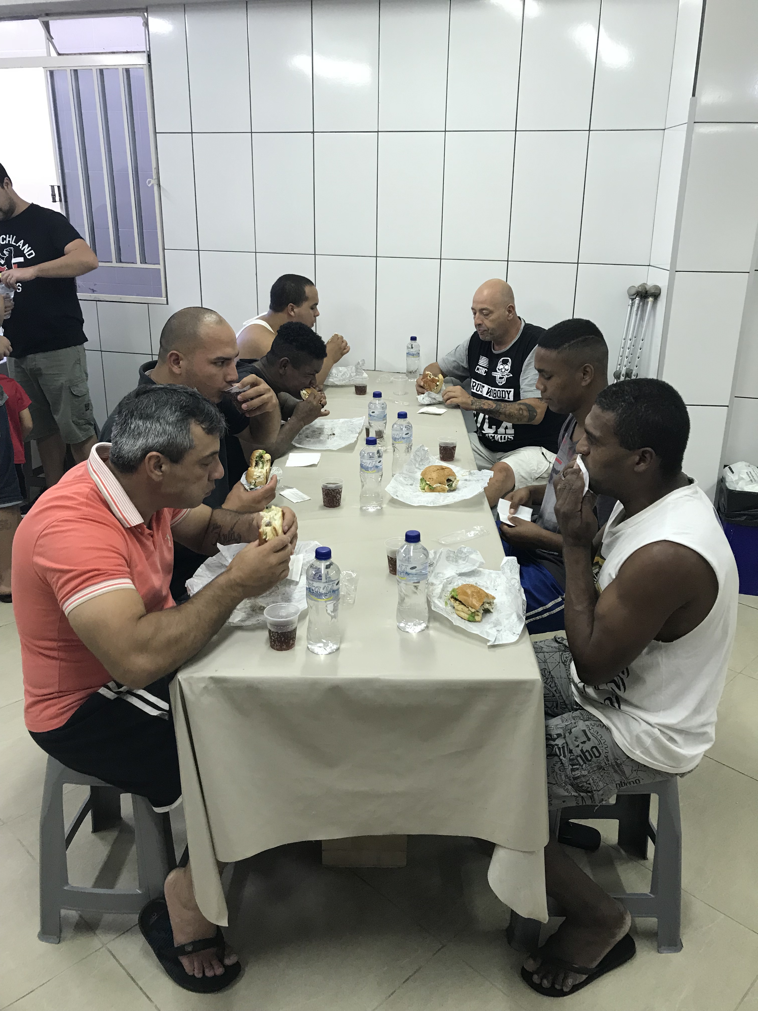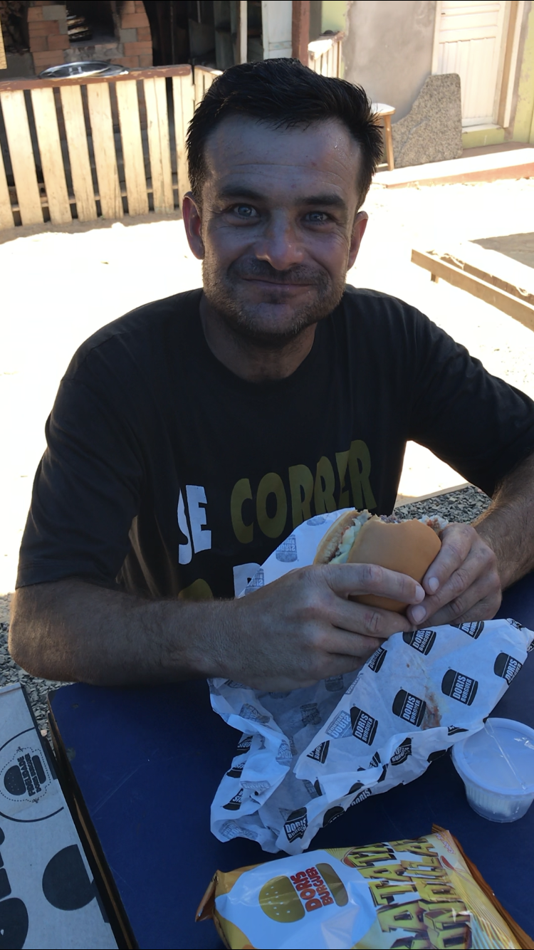 No dia seguinte, tínhamos mais parceiros para dar sequência ao desafio. Começando pela Doris Burguer, que preparou 50 hambúrgueres do mesmo jeito que é entregue aos clientes. Visitamos a Comunidade Católica Deus Pai, que abriga 20 moradores de rua. Enquanto isso, os demais lanches foram distribuídos pelos funcionários da hamburgueria pela cidade. O pessoal também recebeu 60 garrafinhas de água doadas pela Ita’y Água Mineral.