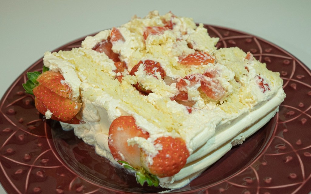 Morango com Suspiros é um bolo clássico e ainda não está no top 5 da Dona Padoca, mas deveria estar porque é um doce delicioso. Nele, vai pão de ló branco, recheio de trufa branca, mais um recheio de mousse branco com morangos, cobertura de mousse branco com suspiros, calda de morango e morangos.