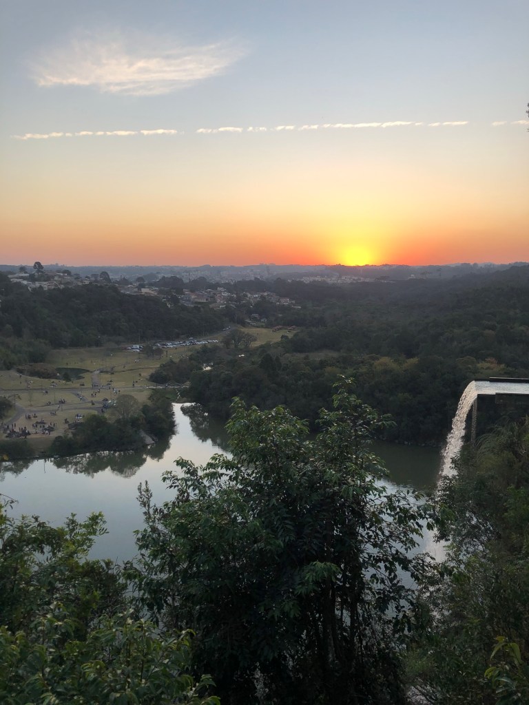 Nós tivemos um almoço em Ponta Grossa naquele domingo, então, chegamos em Curitiba por volta das 16h30, bem pertinho do pôr do sol. Como já tínhamos o roteiro em mente, fomos direto para um parque apreciar o fim do dia. Para não entrar na cidade, colocamos no maps para encontrar o melhor caminho para nos levar até o Parque Tanguá.
