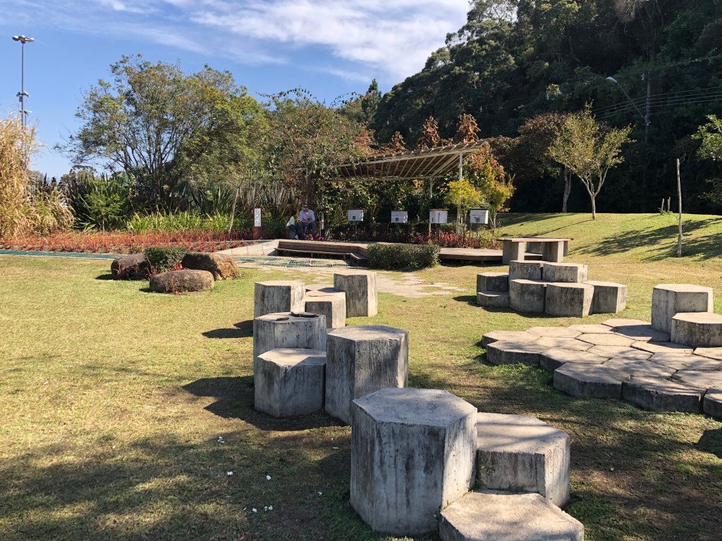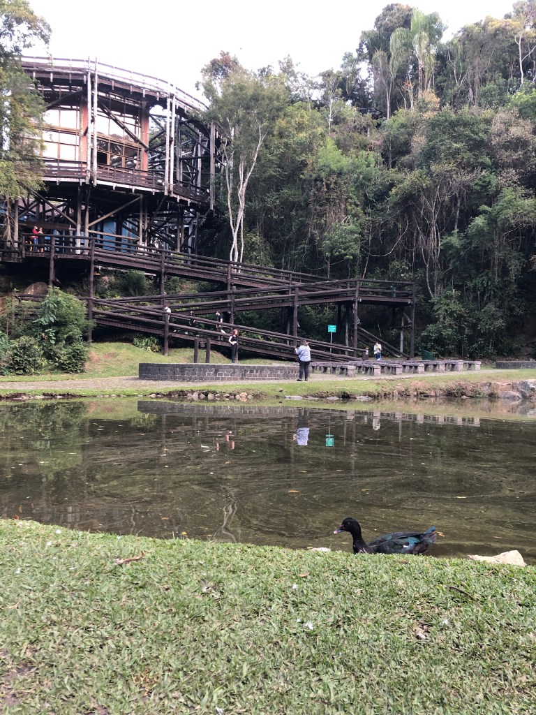 Isso já era umas 15h. Então, fomos para outro parque da cidade: o Bosque Zaninelli, que fica dentro da Unilivre (Universidade Livre do Meio Ambiente). Este já era um desejo da gente, pois só havíamos visto por fotos e vídeo, nunca tínhamos ido.