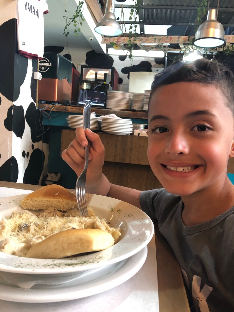 Almoçamos em Canasvieiras, no La Parrilla de Carlitos, um restaurante argentino com um ambiente muito gostoso e comida boa, que tem até tango. Pedimos um prato executivo com frango na parrilla e outro com peixe, além de nhoque para o Davi. Nos pratos executivos vêm muita comida. Não demos conta! Pedimos uma jarra de limonada com frutas bem diferente pra acompanhar. A conta aqui saiu por volta de R$ 170, mas valeu a pena conhecer. O local também tem doces e empanadas.