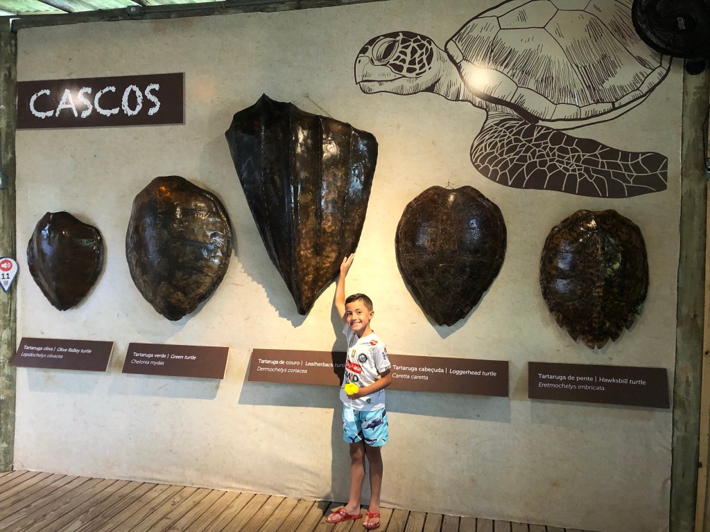 Em uma das áreas, você também pode comparar a diferença no tamanho dos cascos das tartarugas-marinhas. Ver o esqueleto de um golfinho e partes de outros animais marinhos. Além disso, se informar sobre a preservação das espécies e meio ambiente. Aproveite e tire uma foto na escultura de ovo de tartaruga.