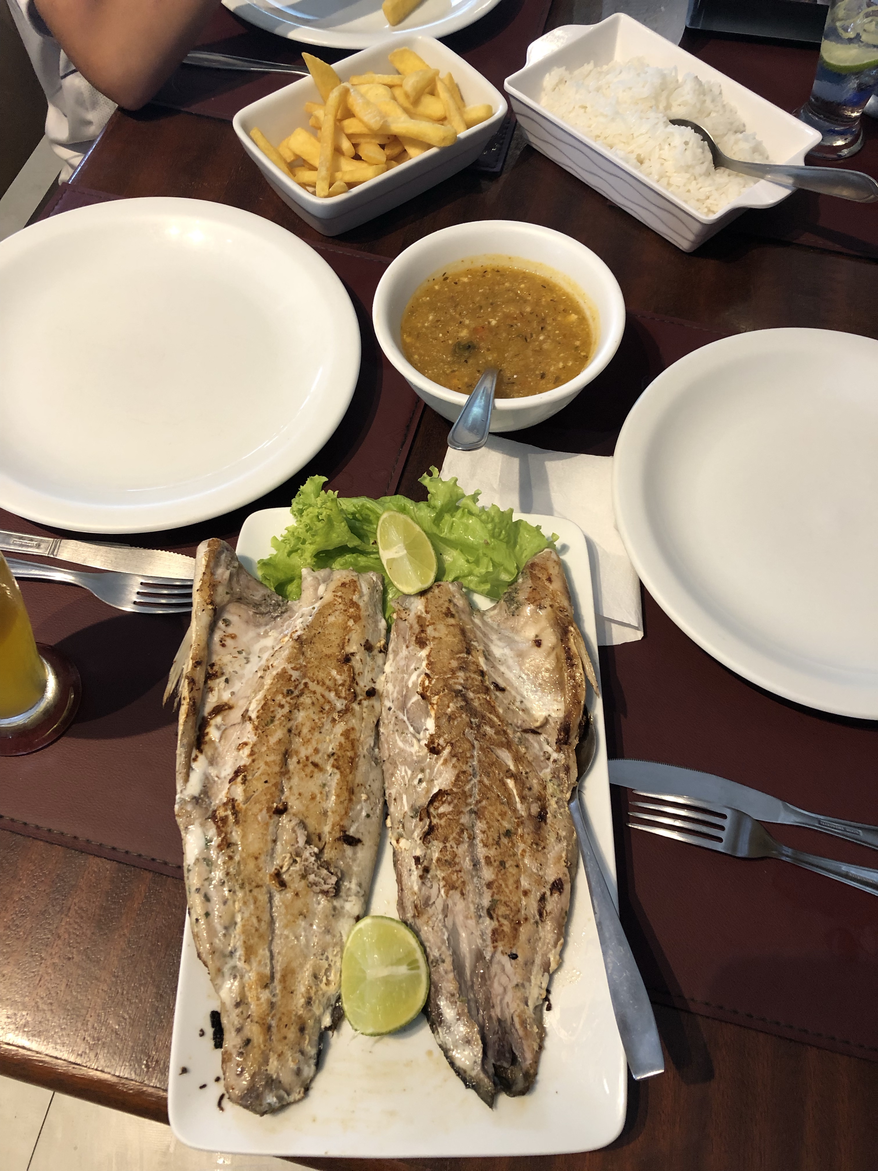 Pedimos uma anchova grelhada para duas pessoas, com arroz, pirão e batatas fritas. Foi o suficiente para nós três. Se estivesse sol, tínhamos ficado ali fora, vendo de perto os barcos, lanchas e jet skis passando. Transmite uma paz! Mas só assim já estava muito gostoso, com música boa ao vivo. O almoço saiu em torno de R$ 150 com bebidas.