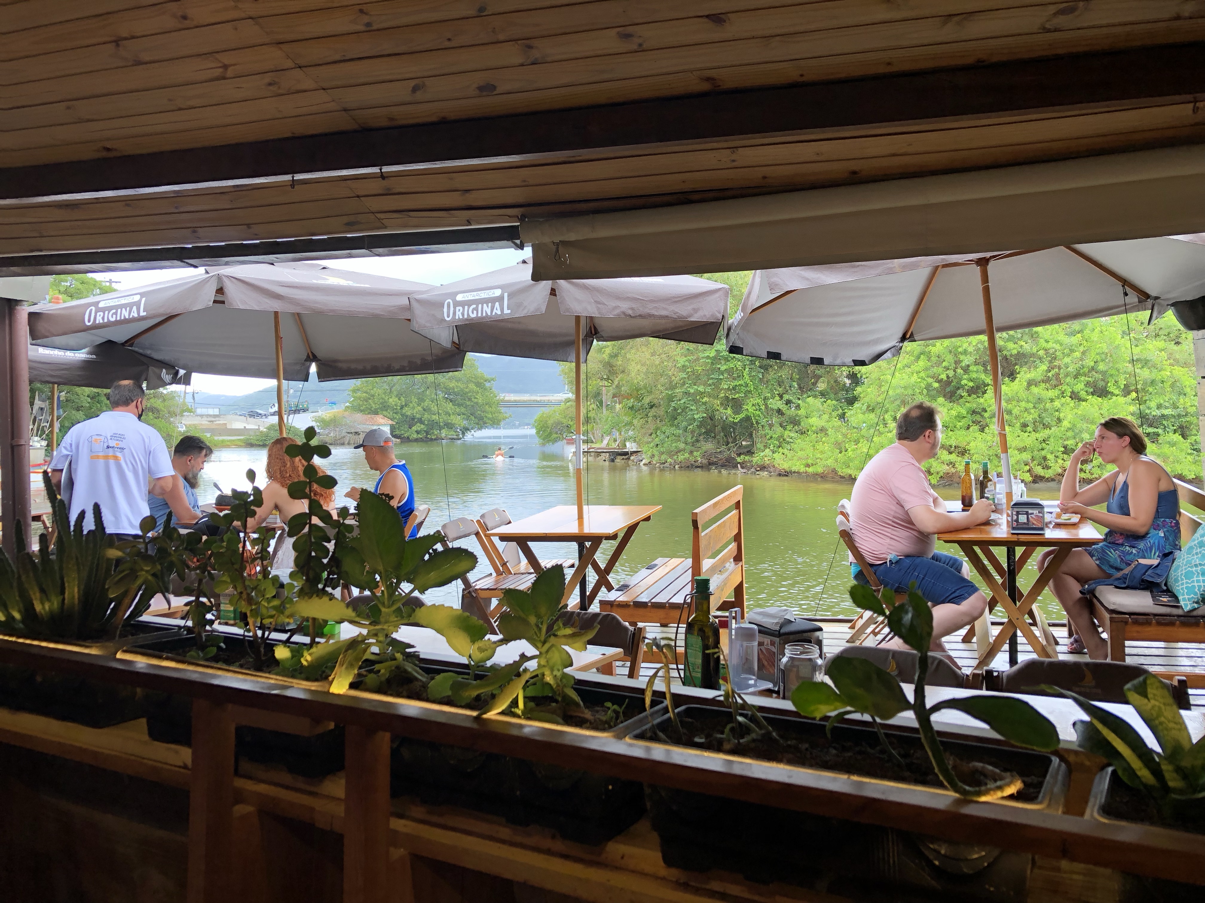 Saindo dali, fomos almoçar em um restaurante próximo, que encontramos em uma página de instagram da região (@avaliandofloripa). O local se chama Rancho de Canoa e fica em frente ao canal que liga a Lagoa da Conceição ao mar. Lindo lugar com comida deliciosa!