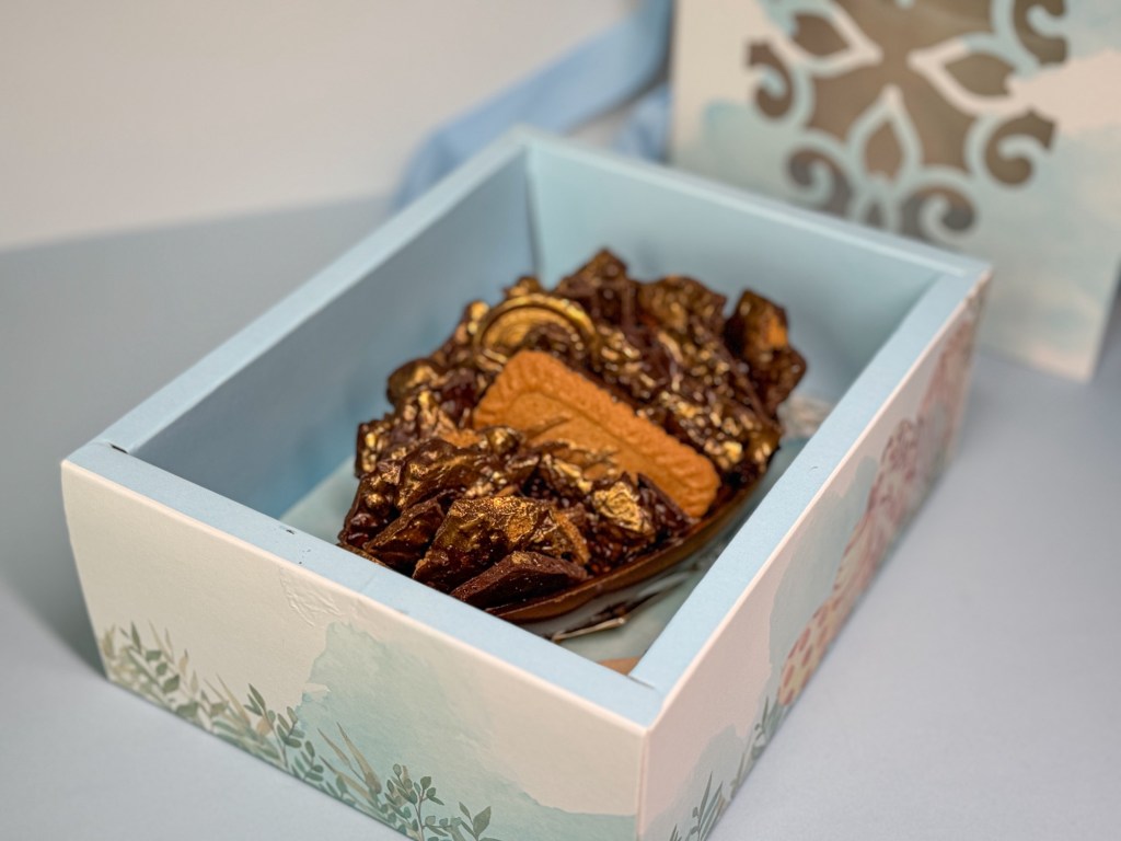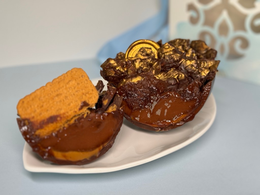 Para a Páscoa de 2024, ela se superou. Criou um tema que insere todos os ovos na narrativa de A Fantástica Fábrica de Chocolate. Um deles é o Ovo Charles, inspirado no personagem principal do filme. Na trama, foi ele que encontrou o último bilhete dourado.