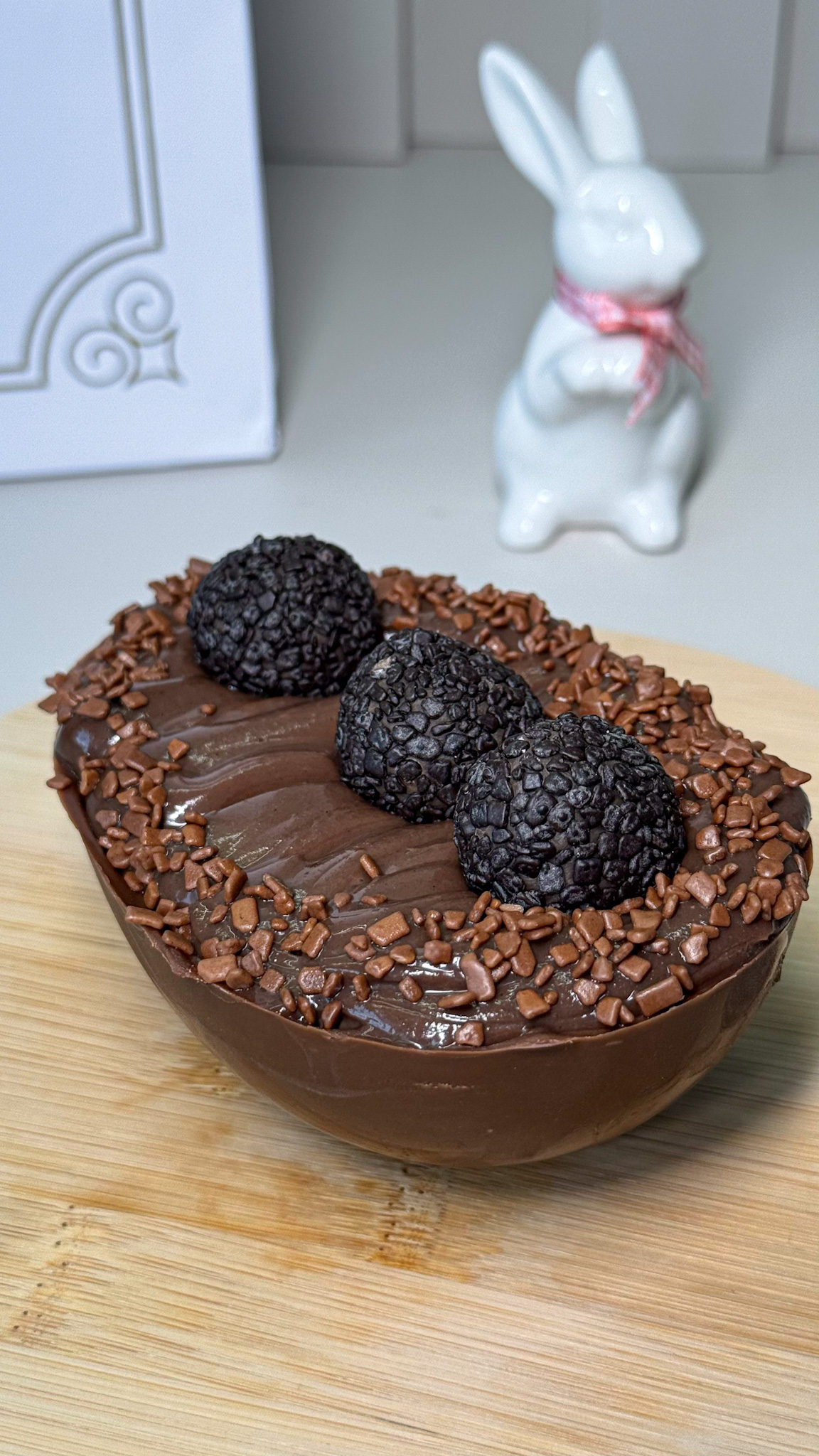 E, claro que, durante a temporada do coelhinho, a Yask’e também trabalha com ovos de Páscoa. Para o nosso guia de 2026, foi preparado o OVO BRIGADEIRO BELGA.