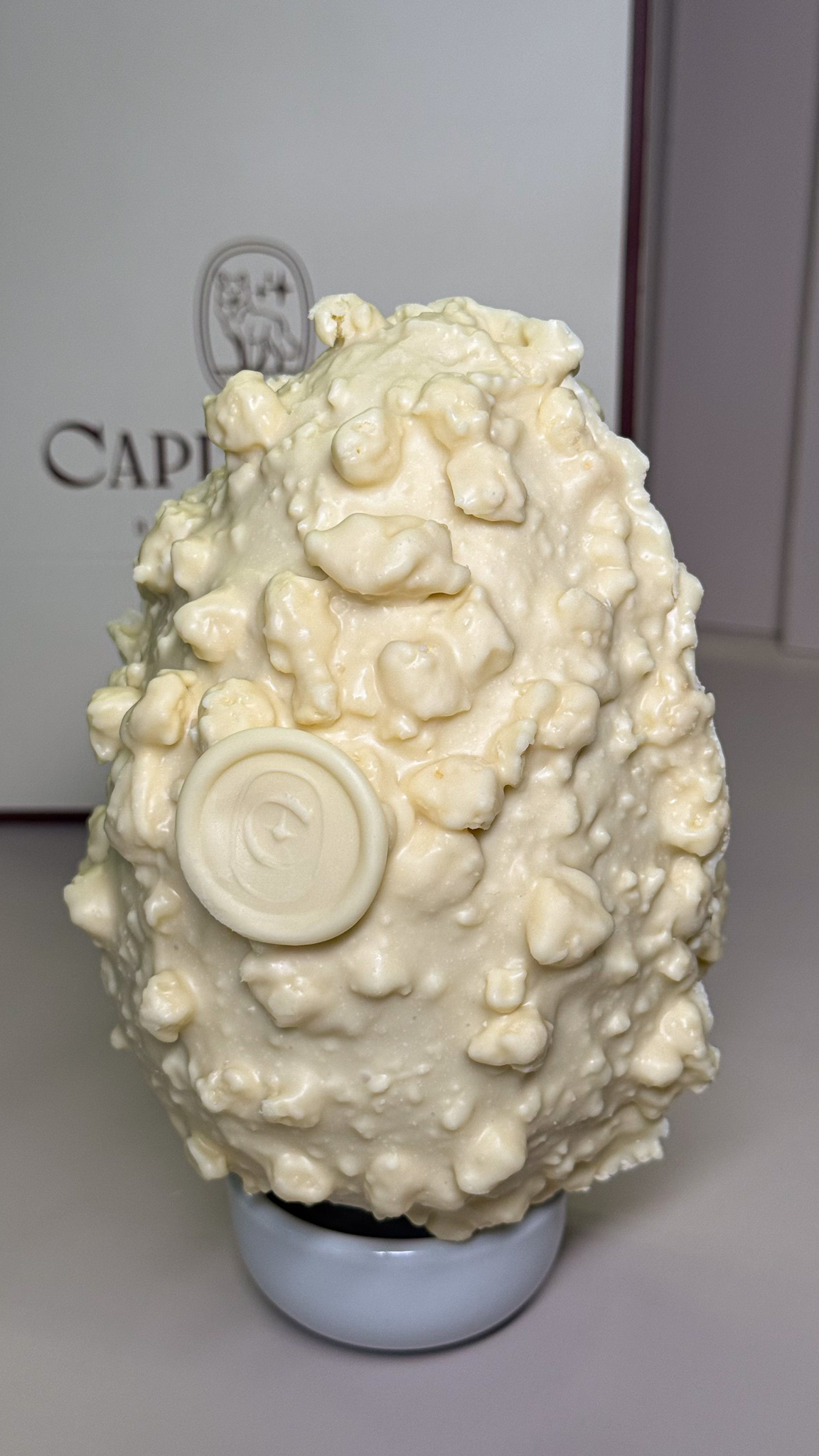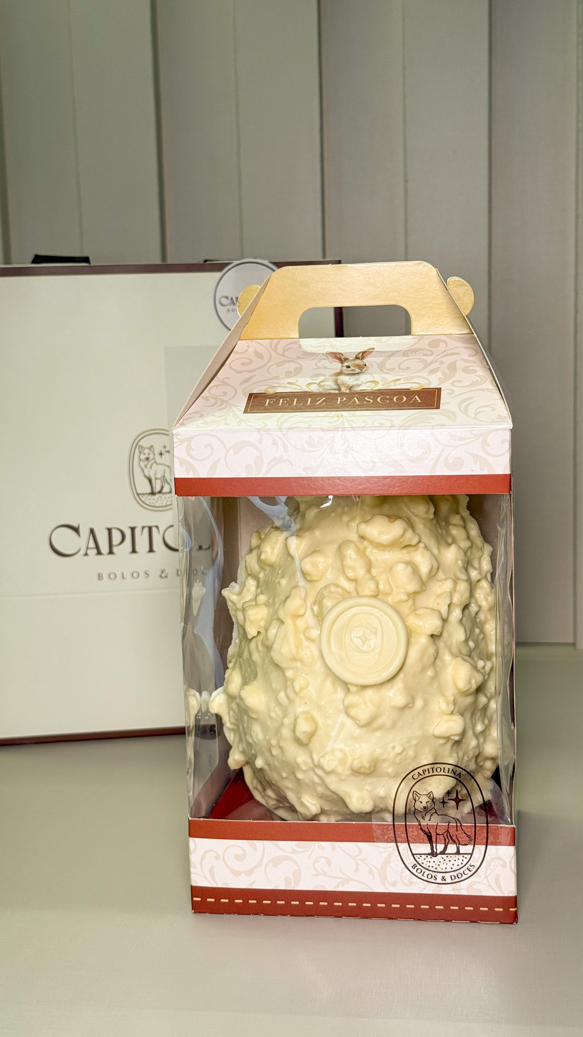 A experiência foi completamente diferente do que tínhamos em mente e surpreendentemente fantástica! Tem a leve crocância do sequilho, a cremosidade e suavidade do recheio, sem contar o chocolate que derrete na boca. Percebe-se que foi colocada toda a essência da Capitolina nesse ovo, utilizando-se desse biscoito tão familiar. A gente se sentiu abraçado!