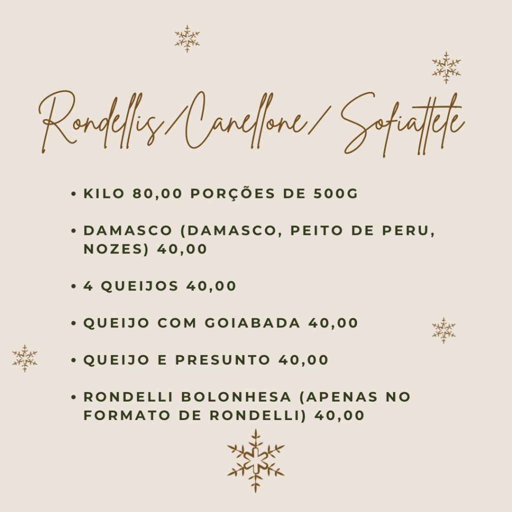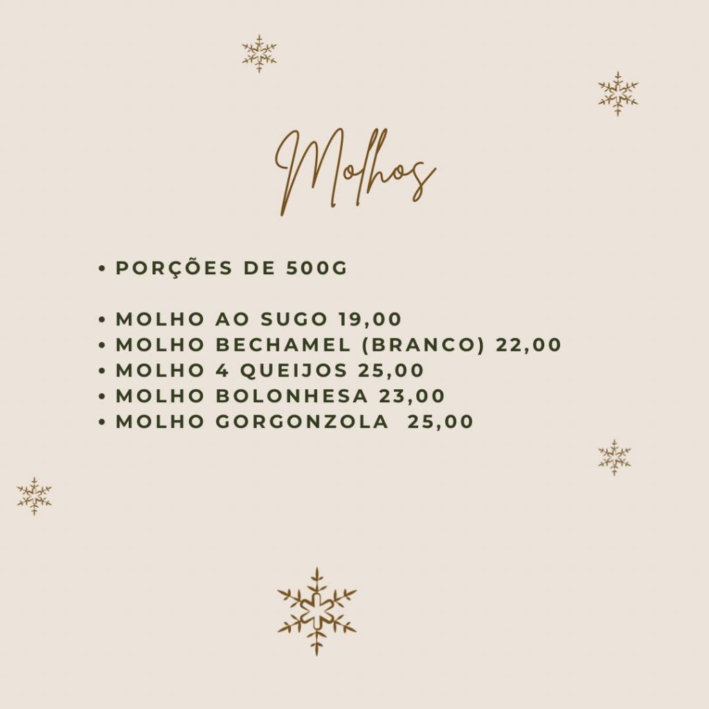 A Bolognezi Massas preparou um cardápio com massas tradicionais, especiais para as festas de fim de ano e também as temáticas. Além disso, eles também oferecem os molhos à parte, para incrementar as massas.
