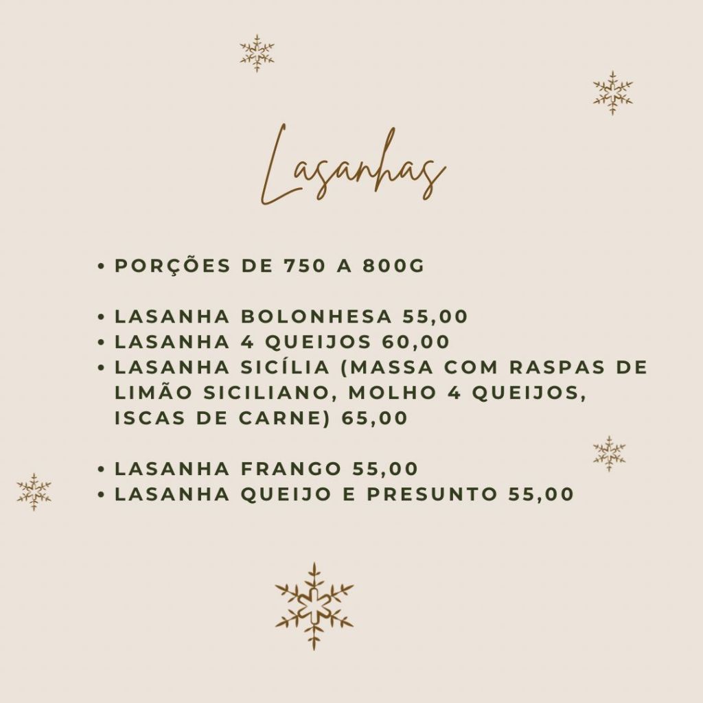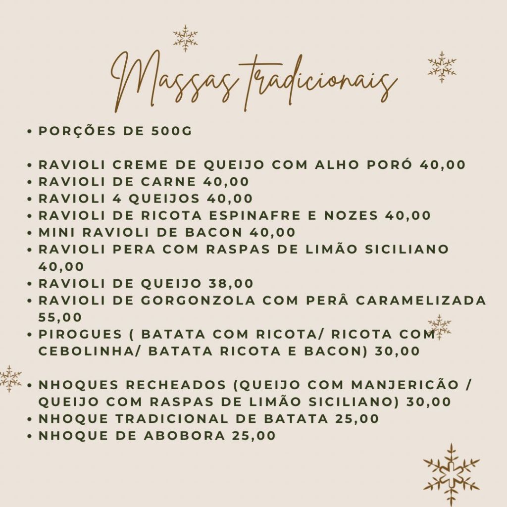 A Belluno Massas vai estar com pratos especiais para o Natal e o Ano Novo. As demais massas, já trabalhadas ao longo do ano, também poderão ser encomendadas.