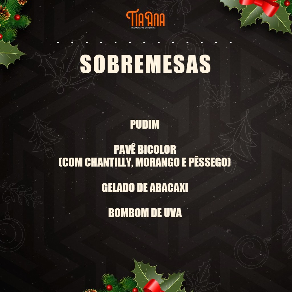 • Encomendas de ceia inteira de Natal e/ou Réveillon 2024