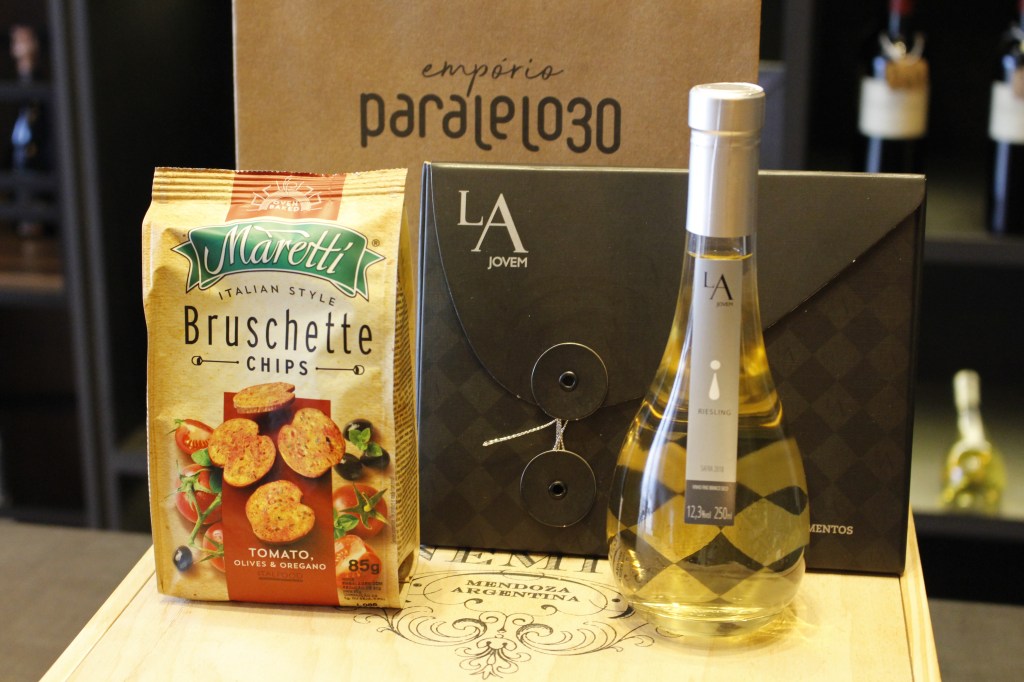 1- Vinho branco Riesling de 250ml da Luiz Argenta + 1 Bruschette Maretti de 85g