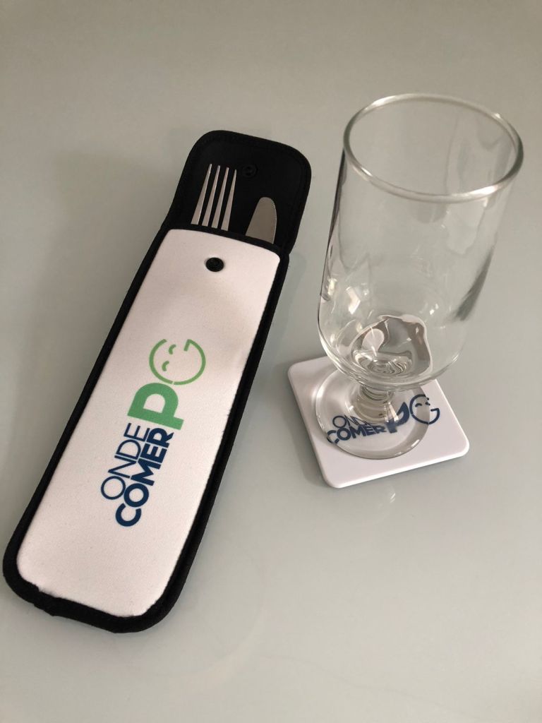 Porta-copo com abridor da marca Onde Comer PG: para você lembrar sempre da gente e não manchar os móveis por aí. Ainda, de quebra, te ajuda na hora de abrir uma gelada.