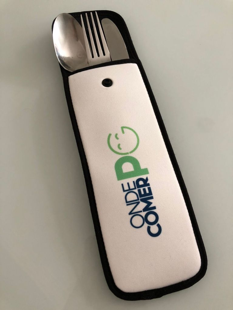 Porta-talher em neoprene da marca Onde Comer PG: para facilitar sua vida quando precisar fazer uma boquinha no trabalho ou para alguma outra ocasião, que necessite levar os talheres, sem o risco de se machucar. Além de tornar esse momento mais prático, né?