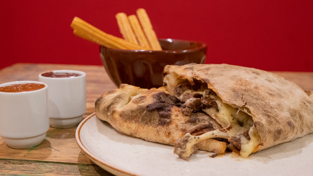 1- Calzone + 6 varetas de churros (acompanha doce de leite e brigadeiro). As opções de calzone são: Alcatra | Frango Cremoso | Portuguesa | Calabresa | Caponata Veggie.