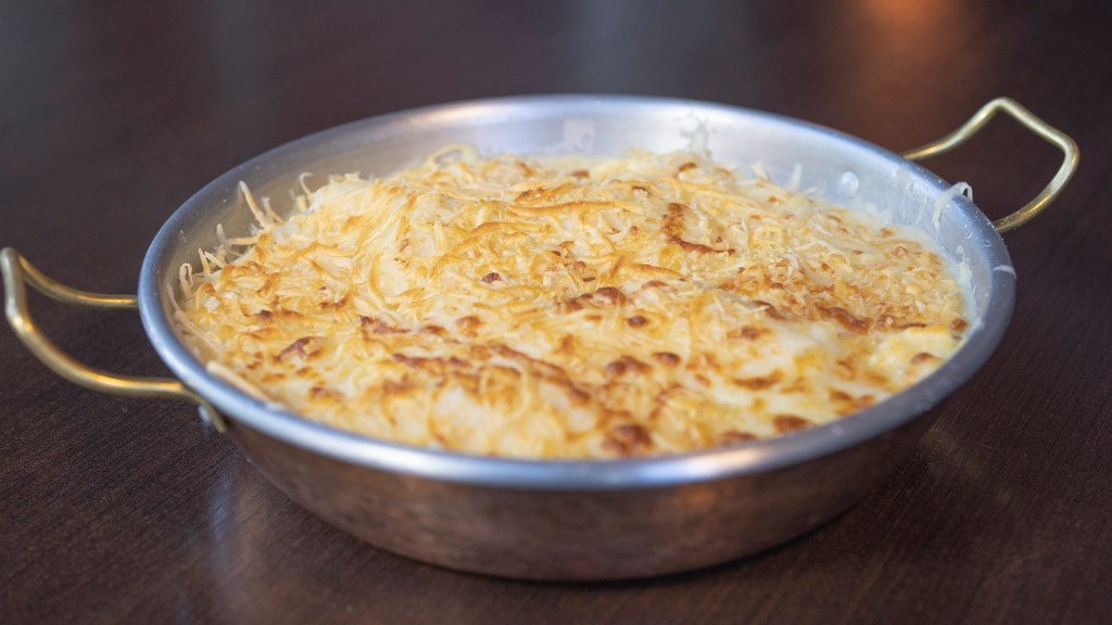 1- Formaggio Affumicato – Uma versão diferente do nosso tradicional Formaggio. Tenros cubos de frango, linguiça artesanal defumada e cebola roxa grelhados e cobertos com penne ao molho de queijo gratinado.