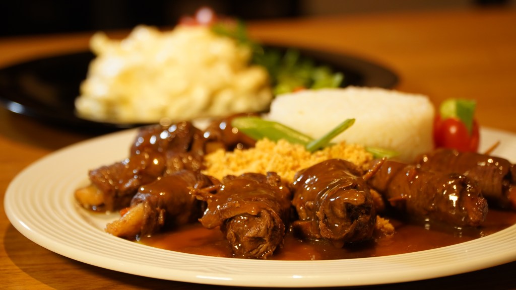 1- Bife a Rolê do La Gôndola + arroz + maionese + fritas