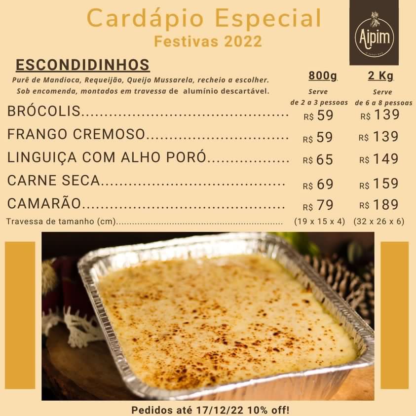 O Aipim Sabor Raiz faz sucesso em Ponta Grossa pelos pratos produzidos com aipim (mandioca). É possível encomendar escondidinhos de 800g (serve de 2 a 3 pessoas) ou 2kg (serve de 6 a 8 pessoas). Eles são entregues resfriados, apenas para aquecer na hora da ceia. Na loja, também tem as opções tradicionais de escondidinho e nhoque.