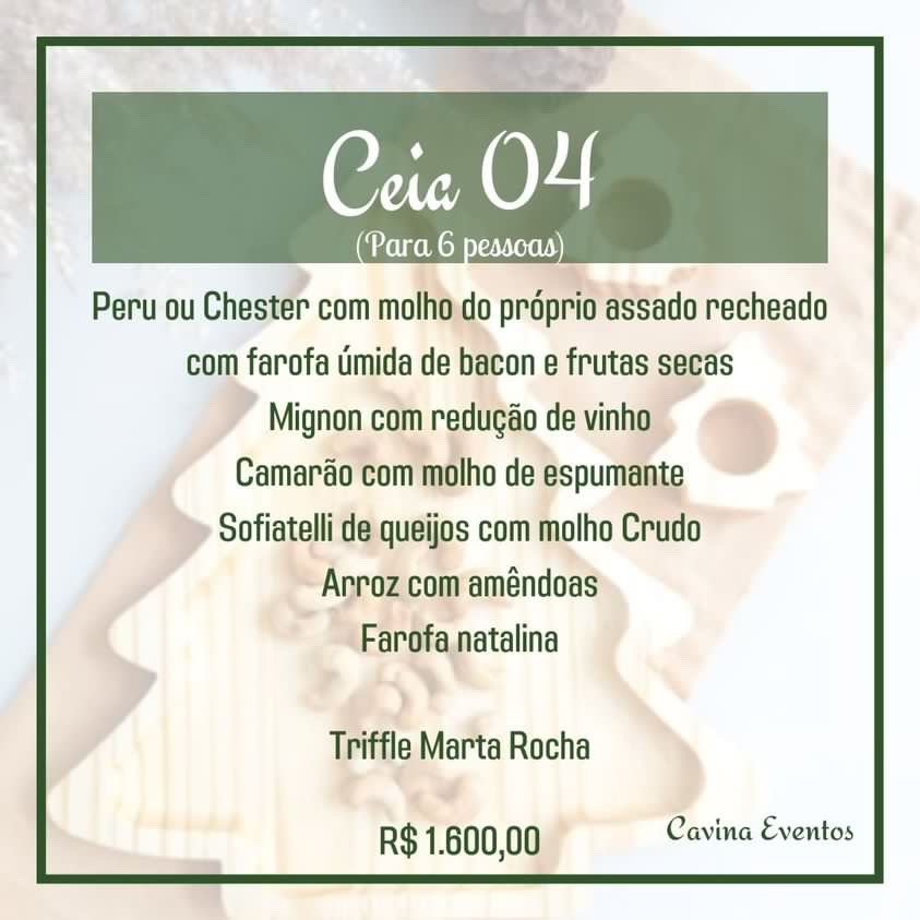 Tradicional na gastronomia de eventos em Ponta Grossa, o Cavina Eventos elaborou um cardápio exclusivo para o Natal com opções de ceias para 6 pessoas.