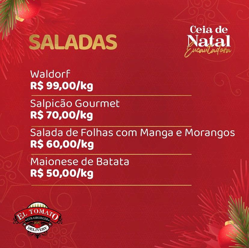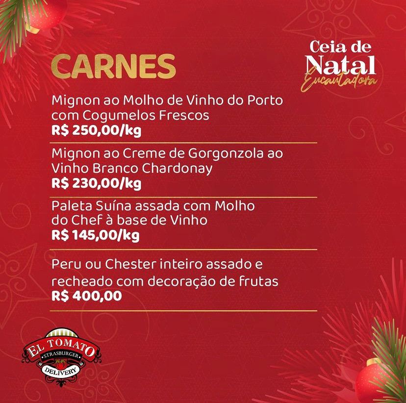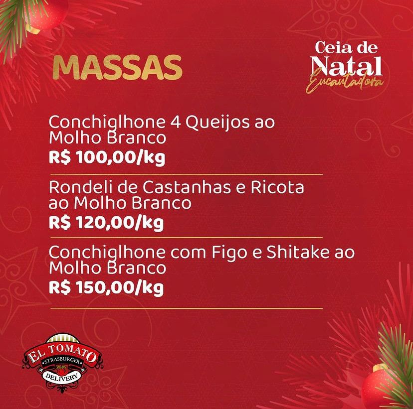 O El Tomato Restaurante e Pizzaria é um estabelecimento localizado na Vila Estrela, que oferece pizzas, pratos à la carte, buffet e carne assada na churrasqueira. Para o Natal, foi criado um menu exclusivo, com pratos vendidos por quilo.