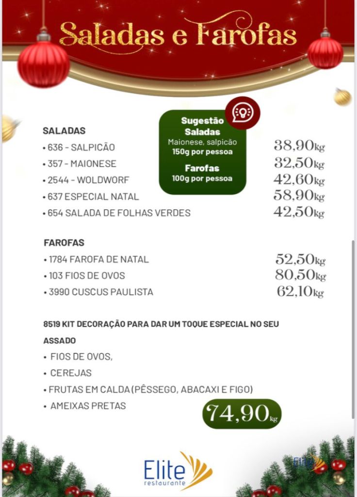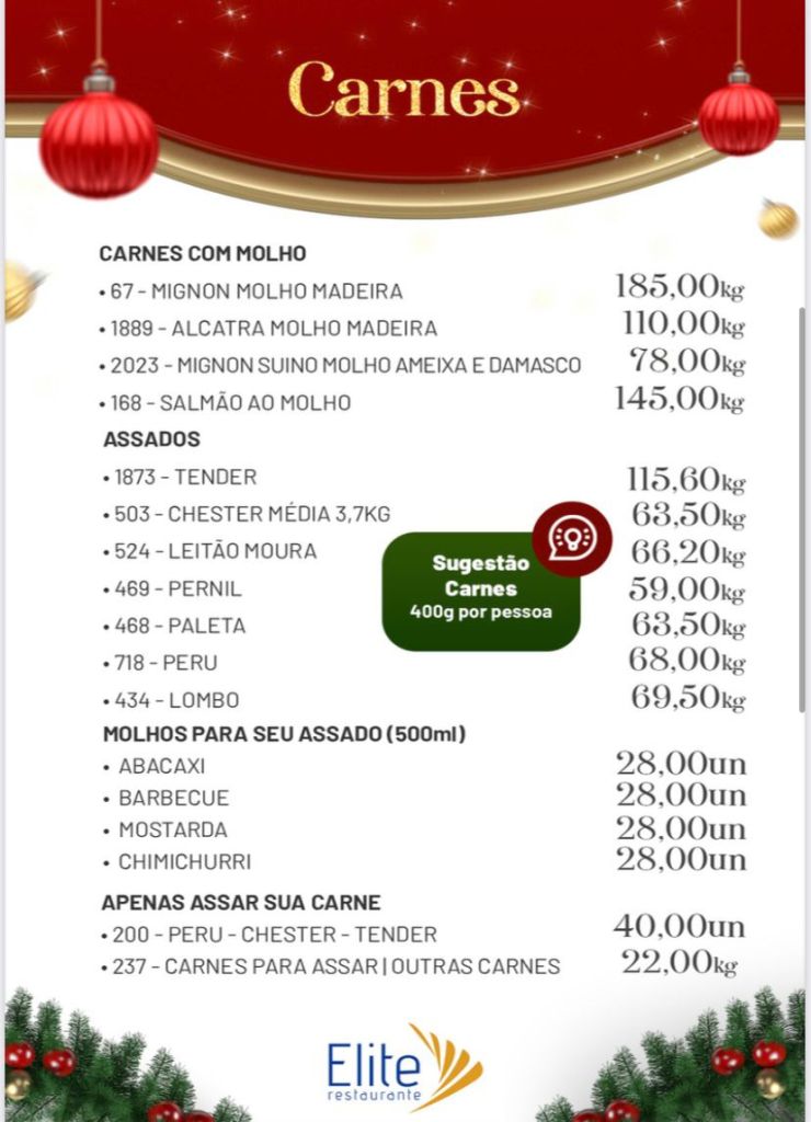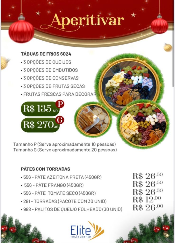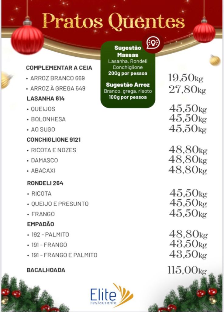 O Elite é um restaurante tradicional de Ponta Grossa, que oferece buffet por quilo diariamente, além de ser um café colonial e conveniência. Para este ano, terão opções para o Natal e o Ano-Novo.