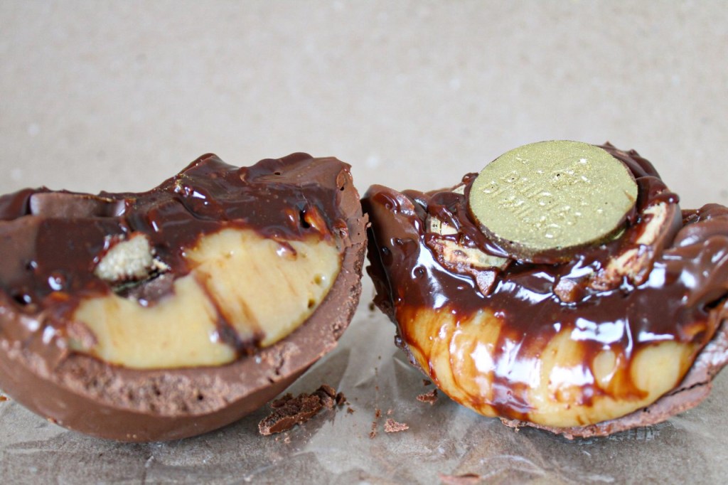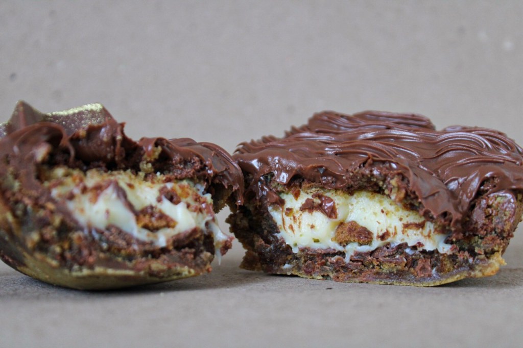 Provar um ovo com casca de cookie é uma experiência completamente diferente. Ele tem a facilidade de cortar em pedaços, caso você queira ter aquela sensação de abocanhar o todo, não apenas a colherada no recheio. O creme é suave para poder se unir à Nutella, proporcionando um casamento harmonioso.