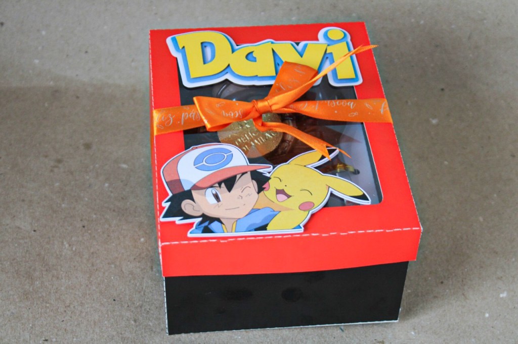 O ovo destaque deste ano é o Infantil Personalizado. Ele vem com a caixa feita com o nome da criança e o tema escolhido, além do sabor de ovo desejado. Aqui, tudo foi pensado nas preferências do Davi: uma caixa do Pokémon com o sabor Trufado + Bombom Sonho de Valsa