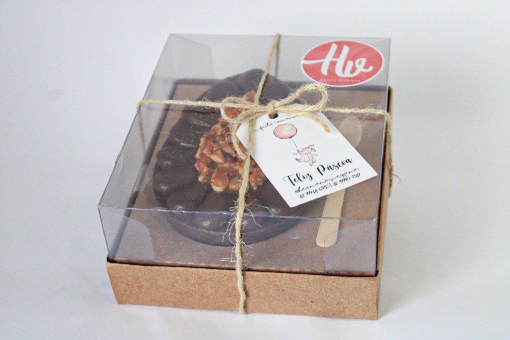 Há ainda presentes, como trufas de chocolate, barras maciças e recheadas. Os pedidos serão aceitos até dia 11 de abril pelo Instagram @hermanavegana ou pelo WhatsApp, clicando aqui (linktr.ee/HermanaVegana).