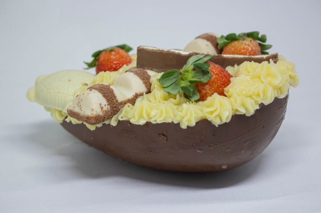 Além dele, a Beiramar também tem de Marshmallow de Laka com Oreo e casca de chocolate branco e ainda Kinder e Ferrero Rocher com casca de chocolate ao leite. Os ovos de 150 g são R$ 24,90; os de 350 g são R$ 59,90. Encomendas podem ser feitas pelo (42) 99812-5058 até o dia 8 de abril.