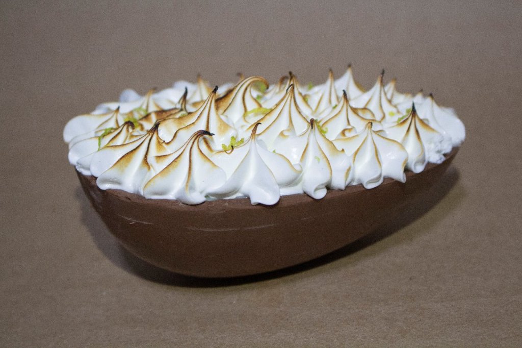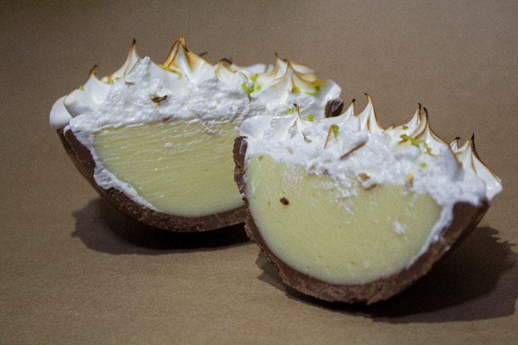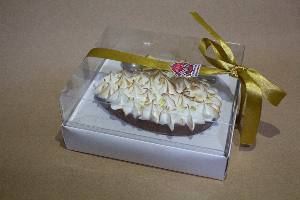 O visual é lindo, com os picos de marshmallow e raspas de limão. O recheio é mais firme por ser trufado, diferente de um creme de limão. Lembra muito o sabor de recheio e cobertura de torta de limão, que nós amamos! A casca de chocolate traz o doce para complementar o sabor. Delicioso! O peso é 300 g e o valor é R$ 59,90.